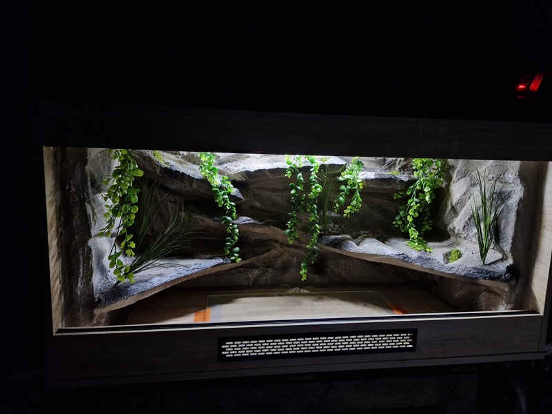 Źródło ciepła – większość gadów to zwierzęta zmiennocieplne, które potrzebują zewnętrznego źródła ciepła do regulacji temperatury ciała. Może to być mata grzejna, żarówka grzewcza czy ceramiczny emiter ciepła. Ważne, żeby stworzyć gradient temperatury – cieplejszą strefę (hot spot) i chłodniejszą stronę terrarium.
